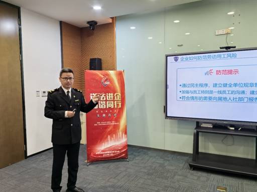 最后,市支隊副支隊長高琴同志向與會企業介紹今年以來勞動保障監察支隊相關工作情況并總結分享三點體會:一是企業要落實勞動用工管理主體責任,嚴格遵守勞動保障法律法規;二是要加強用工管理,主動防范企業用工風險;三是企業人事要不斷充電賦能,促進用工管理水平提升。