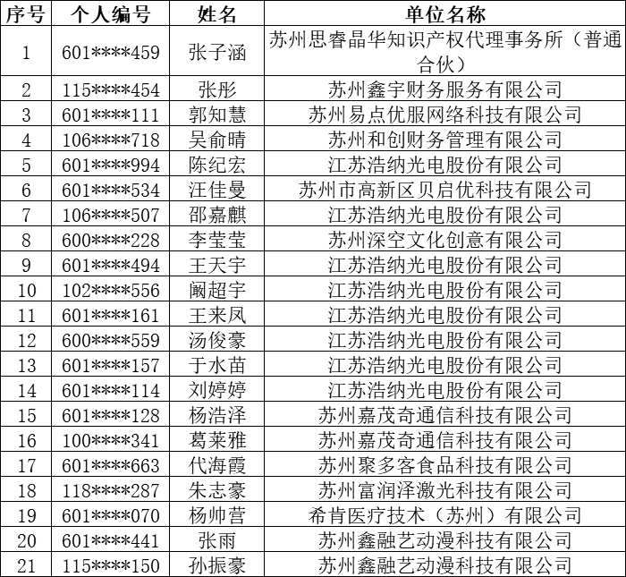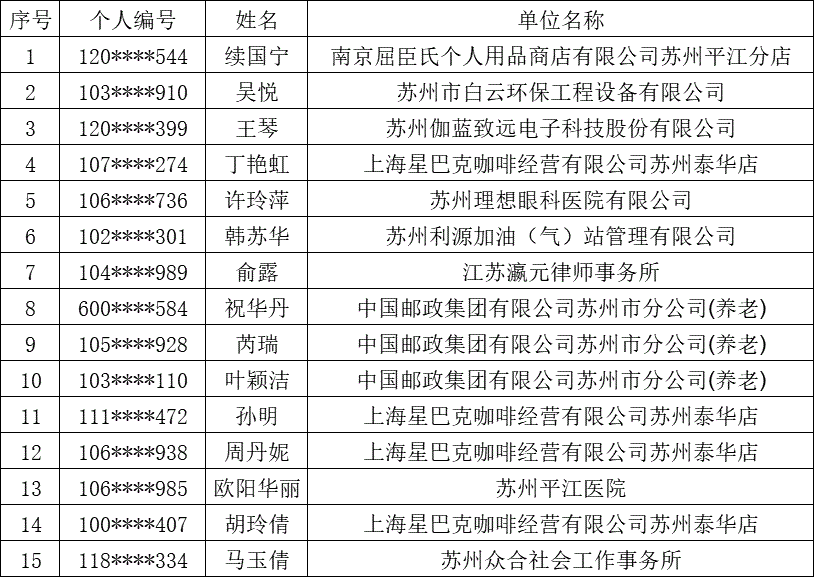 2025年11月小微企業吸納蘇州籍高校畢業生一次性獎補新增人員公示