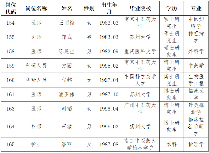蘇州市中醫醫院2025年公開招聘高層次緊缺衛生專業技術人才錄用公示