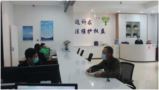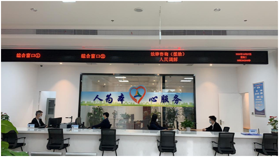 一是有顏值。新大廳面積更大、環境更優,共設置了4個功能區,分別為辦事大廳、候訪室、接訪室和調解室。辦事大廳設兩個綜合窗口以及一個咨詢窗口,另設有填表區、休息區和儲物區,入門處設有導服臺,方便辦事群眾咨詢、辦理和休息,很大程度上解決了老大廳人滿為患、擁擠的問題。