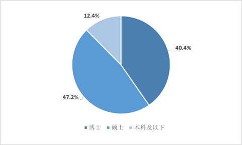 參賽項目持有人具有博士學位的占比40.4%、具有碩士學位的占比47.2%。