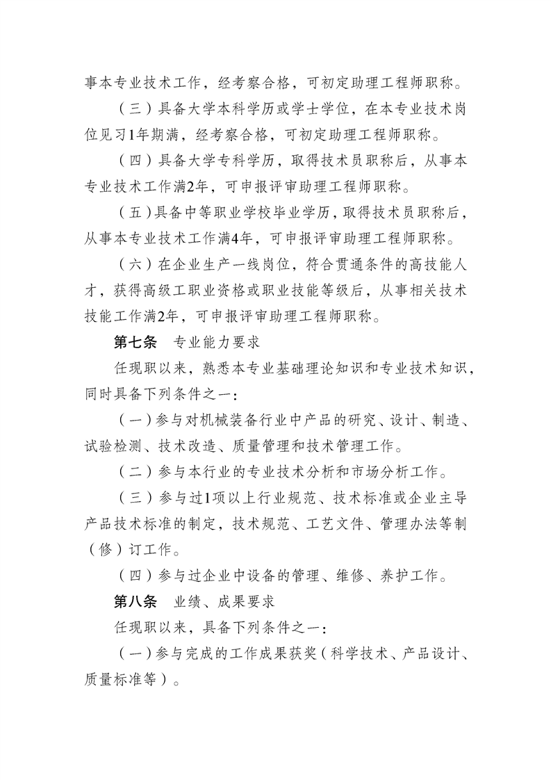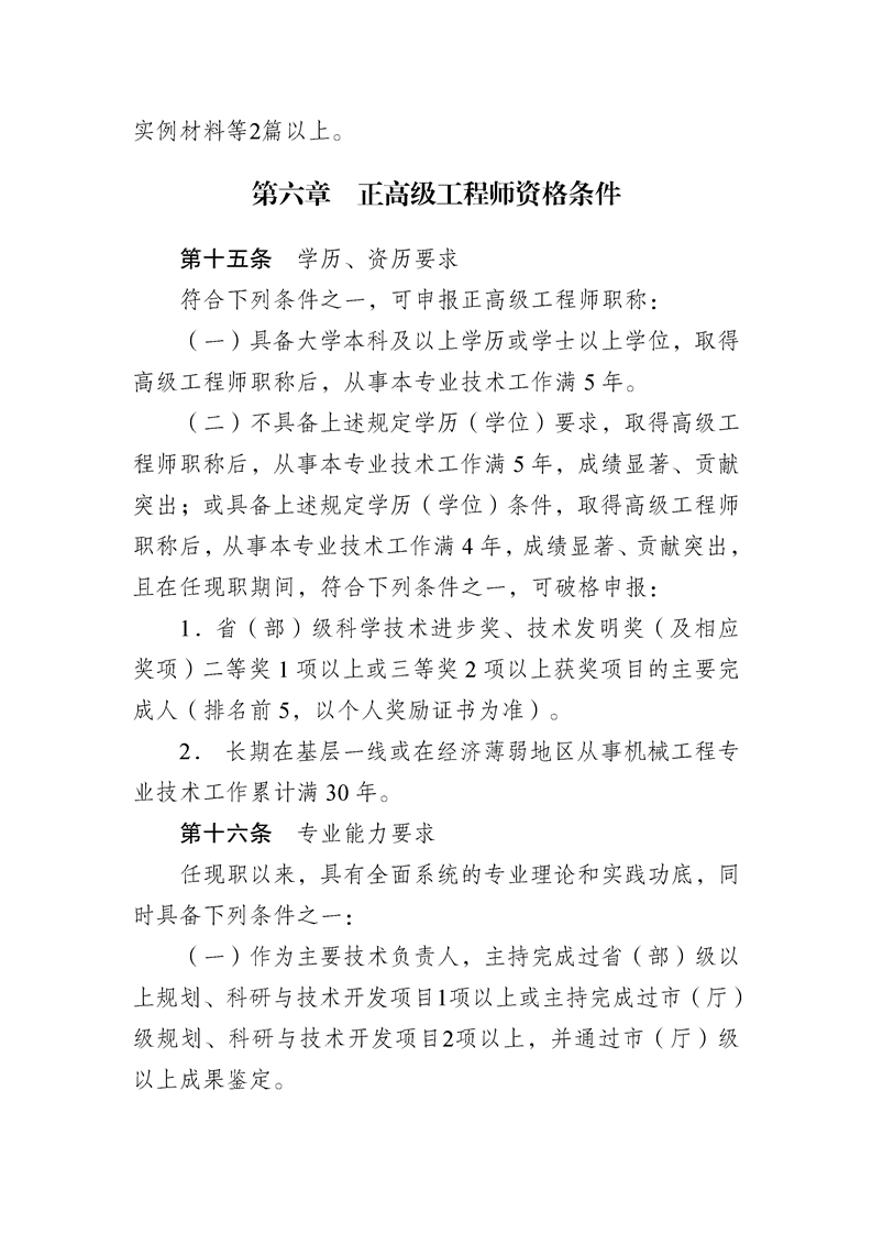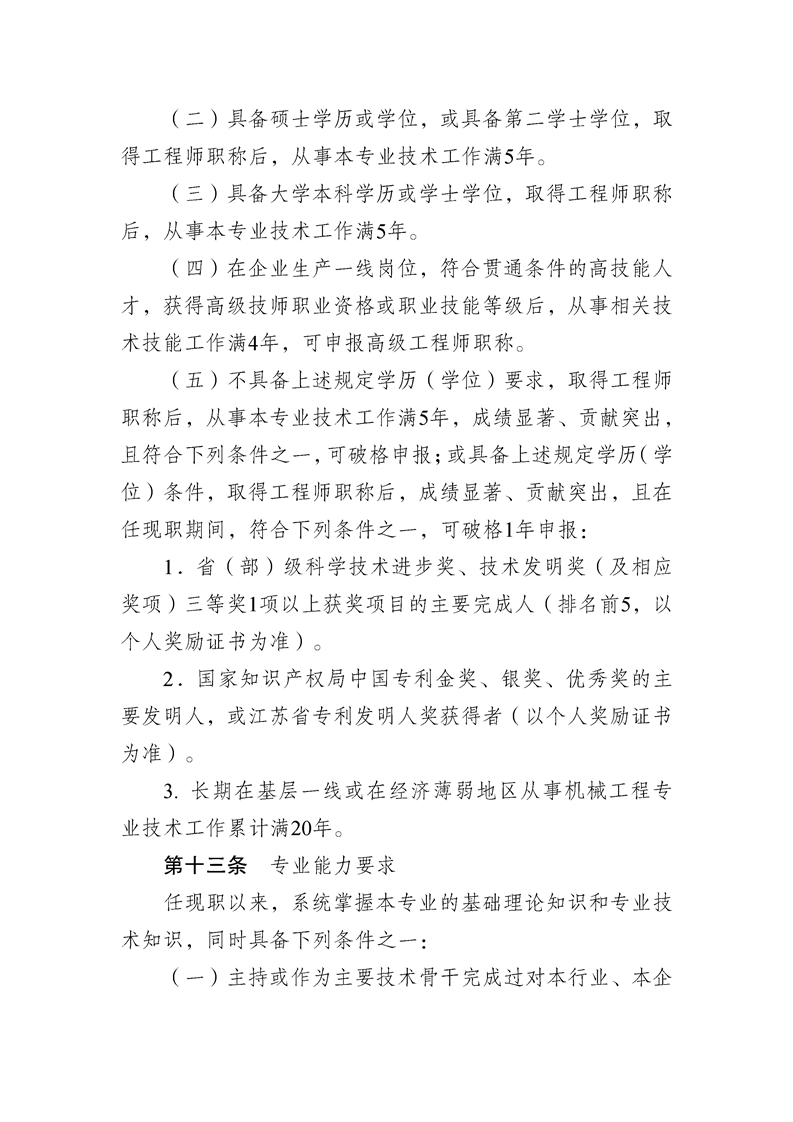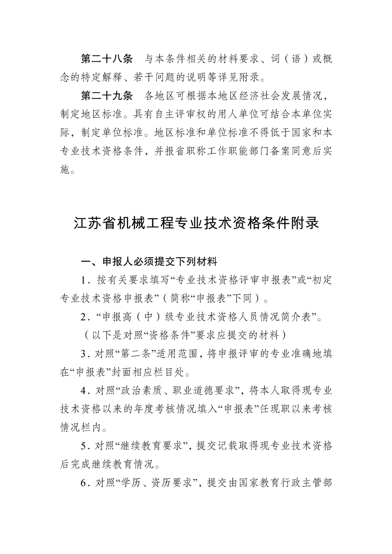 江蘇省機械工程專業(yè)技術(shù)資格條件(試行)