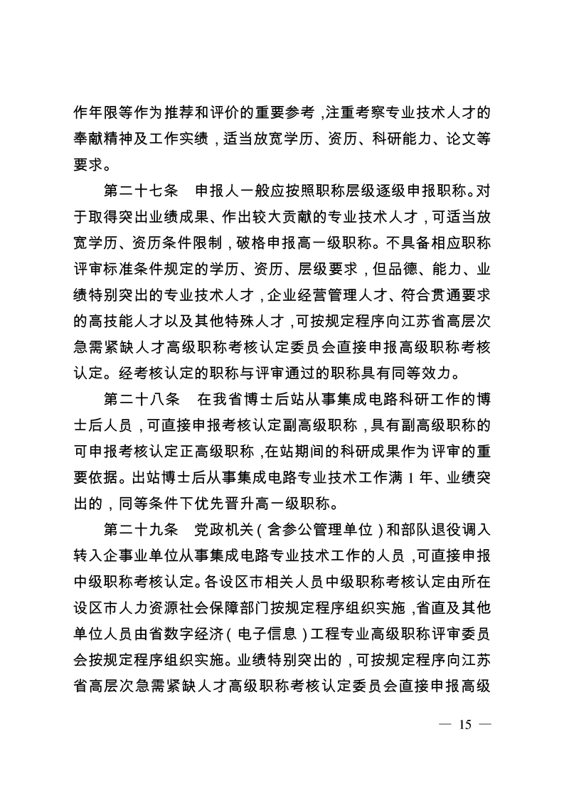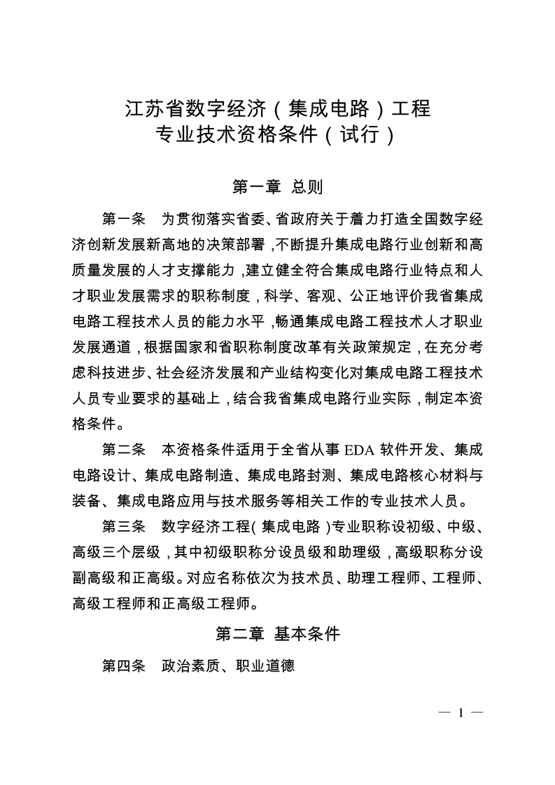 江蘇省數(shù)字經(jīng)濟(集成電路)工程專業(yè)技術(shù)資格條件(試行)