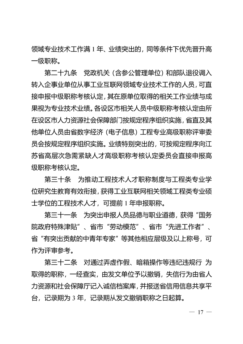 江蘇省數字經濟(工業互聯網)工程專業技術資格條件(試行)