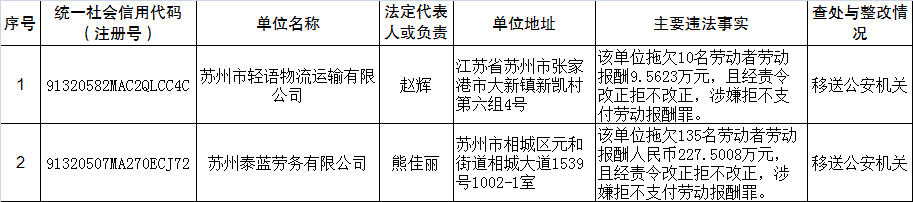 蘇州市重大勞動保障違法行為社會公布(2023年第5期)