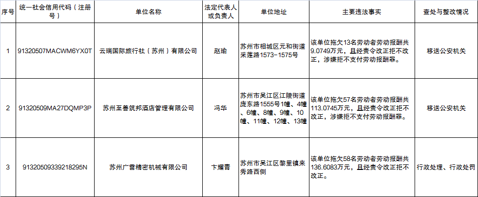蘇州市重大勞動保障違法行為社會公布(2024年第3期)