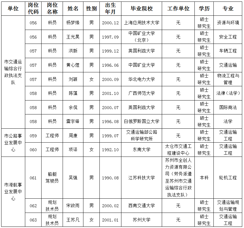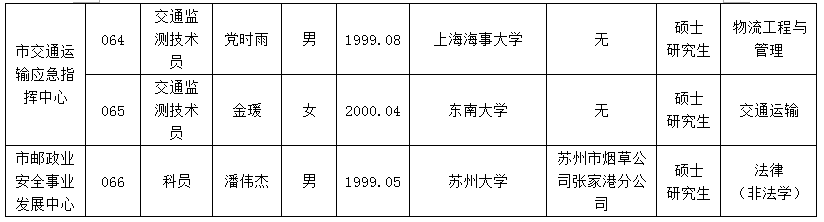 蘇州市交通運輸局事業(yè)單位公開招聘工作人員錄用公示