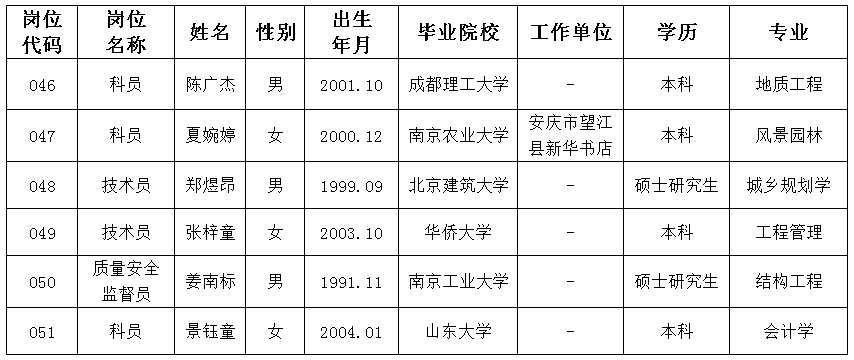 根據《蘇州市2025年市屬事業單位公開招聘工作人員公告》,經過筆試、面試、體檢和考核合格,擬錄用以下6名同志,現公示如下:
