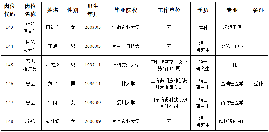 蘇州市農(nóng)業(yè)農(nóng)村局下屬事業(yè)單位公開招聘工作人員錄用公示